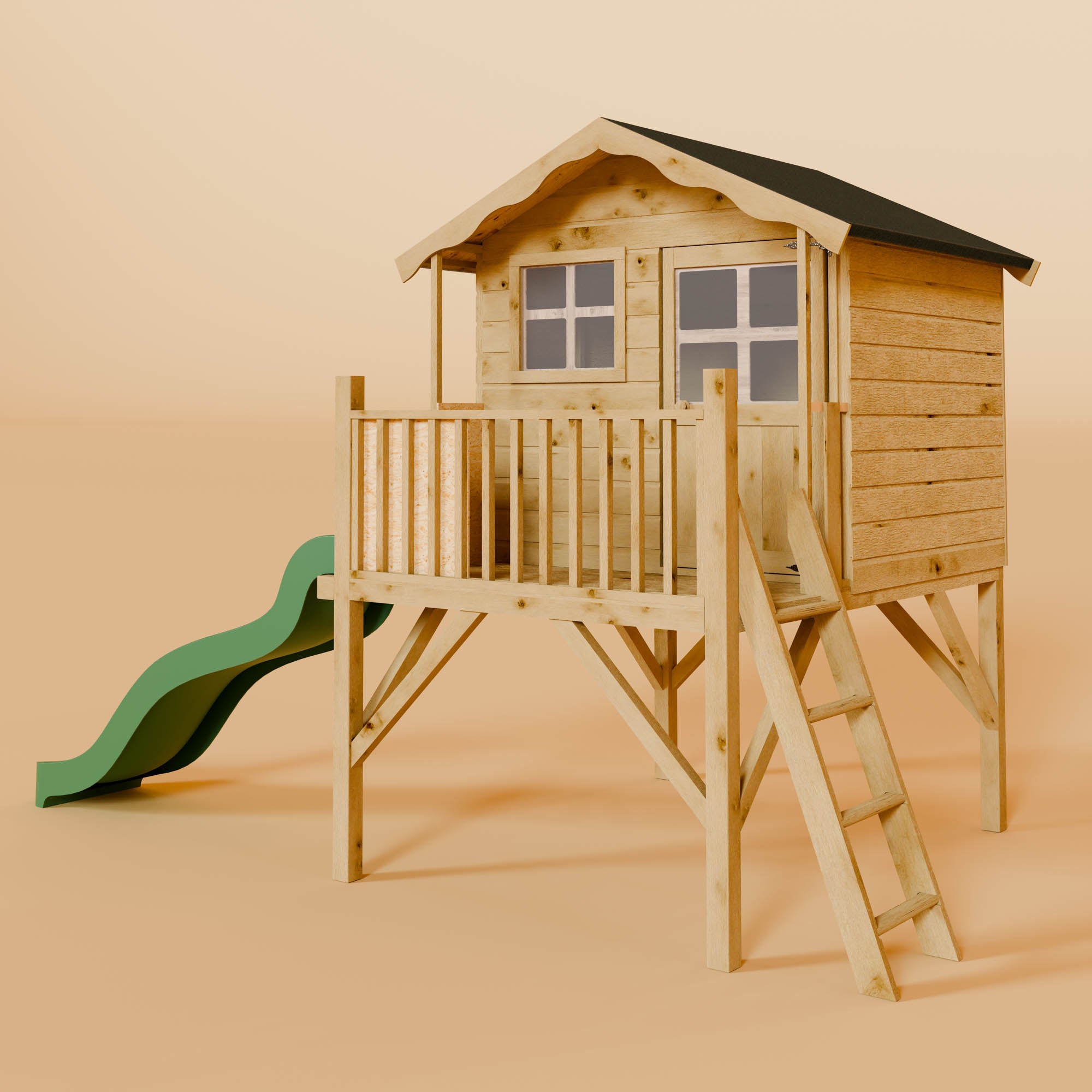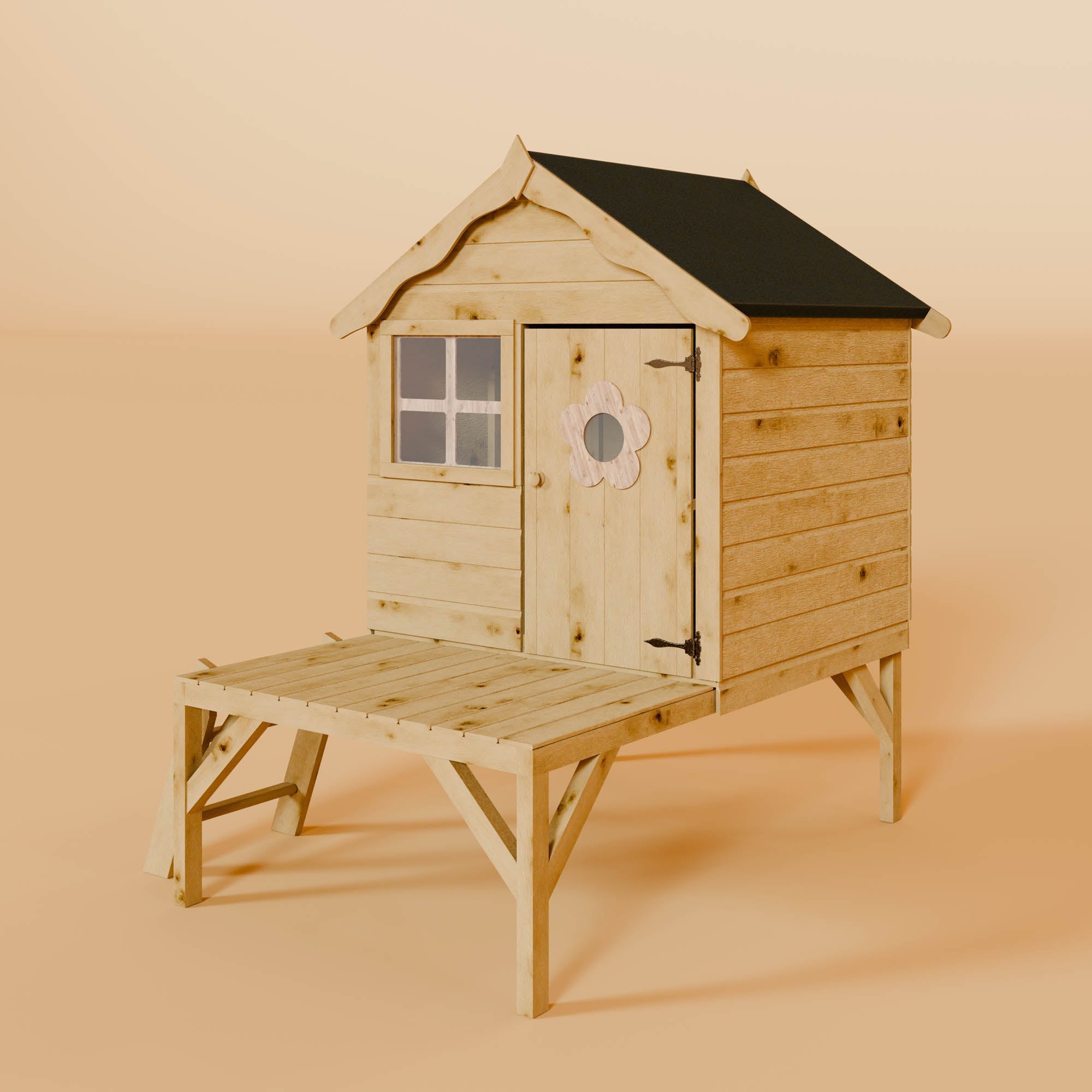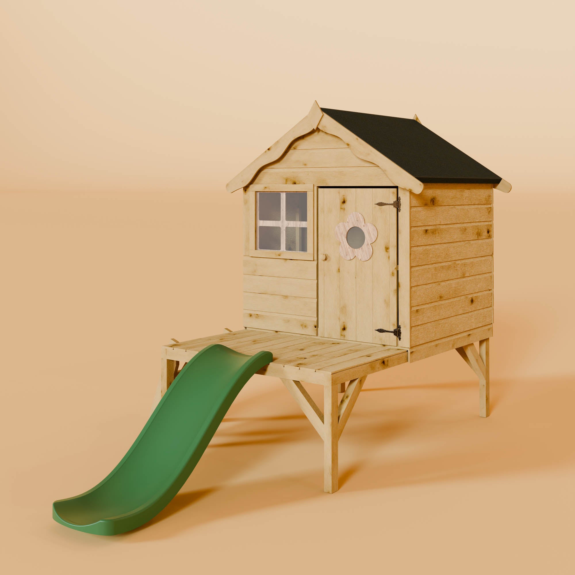 Older kids can enjoy our Poppy tower playhouse with activity centre with a built-in slide and ladder for a view of the garden. Or you can downsize to a Snug playhouse with tower & activity set for younger children or stick to one storey with the Dahlia Playhouse.
