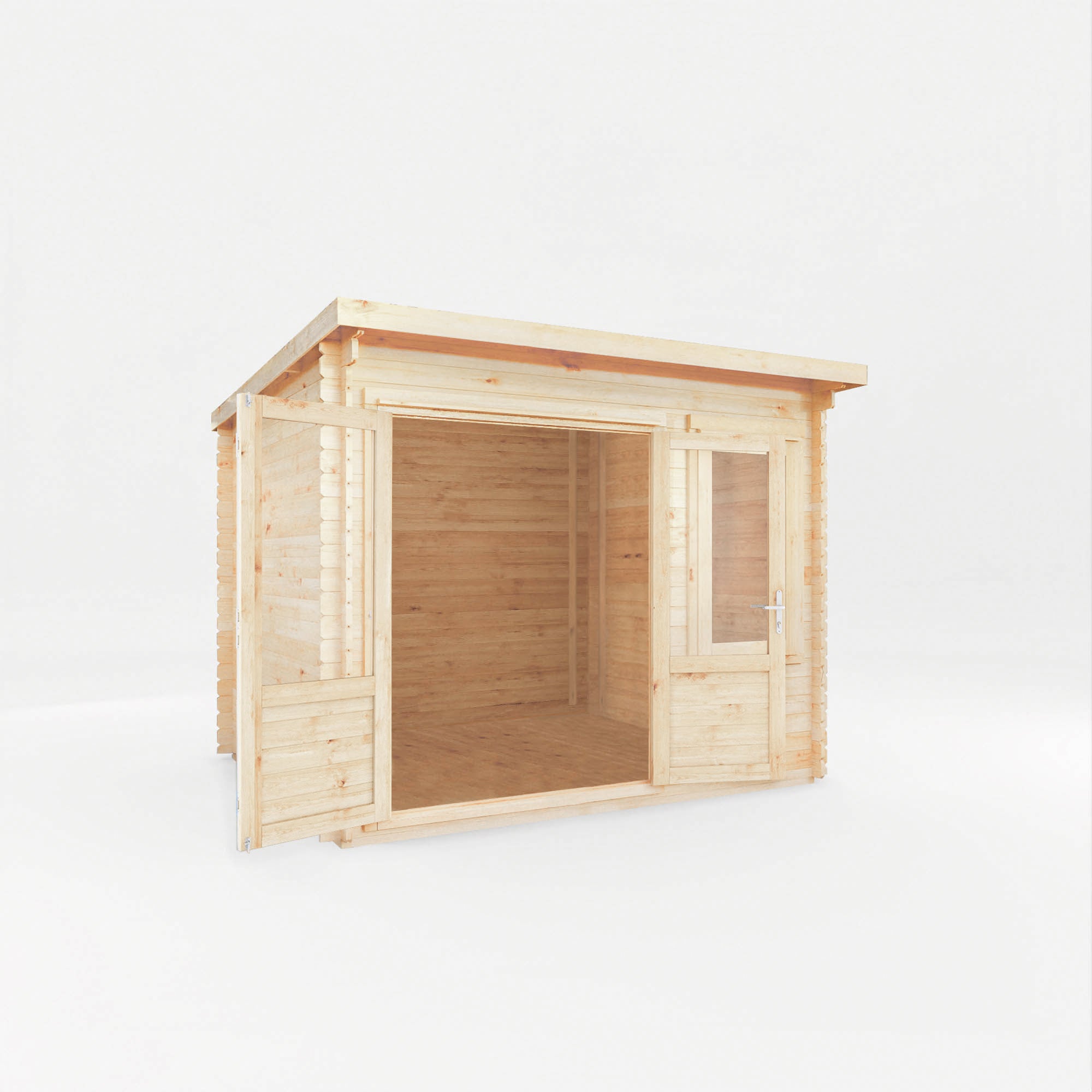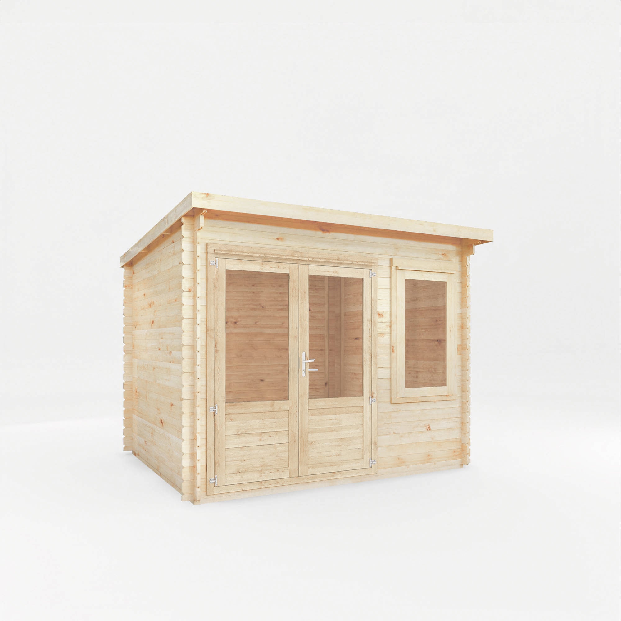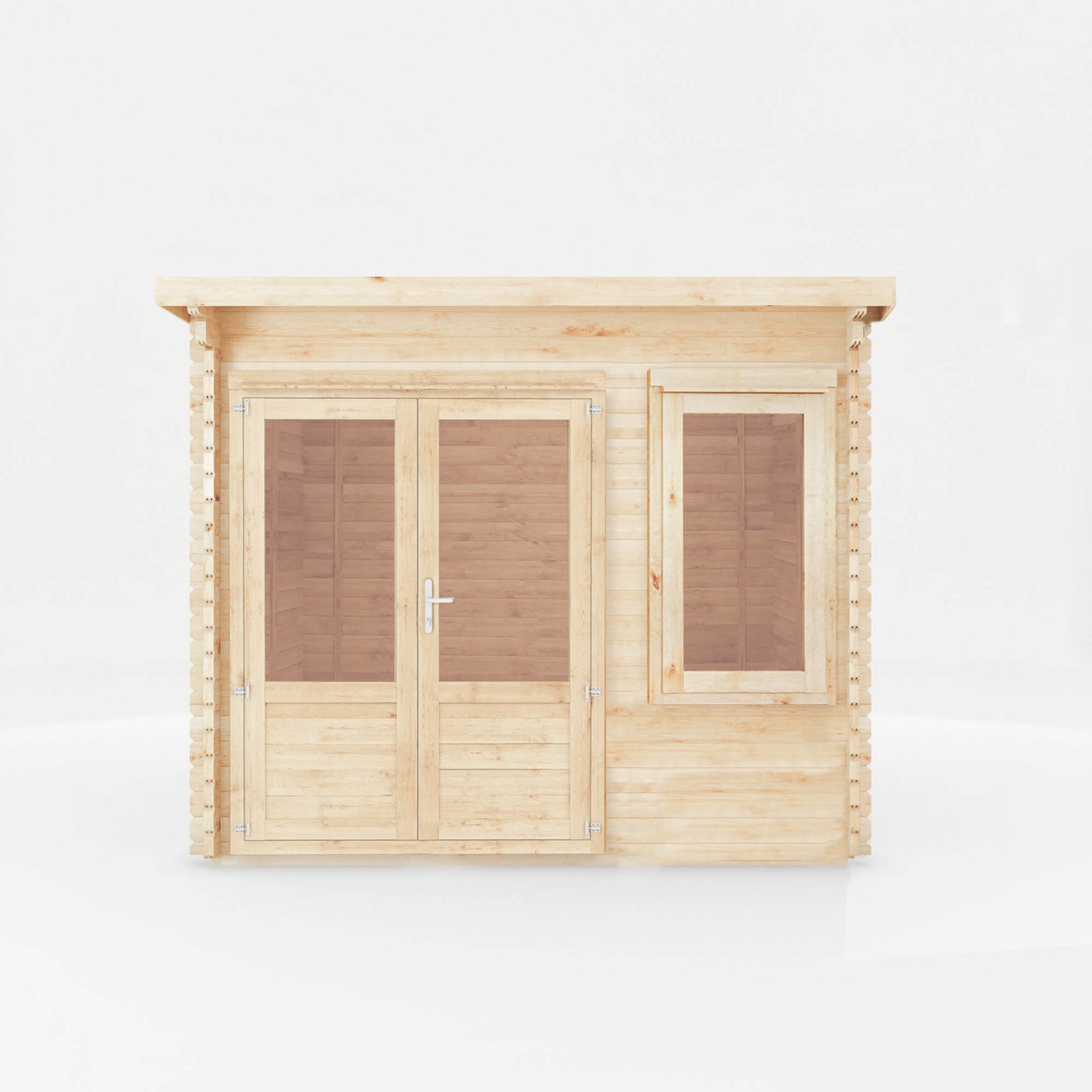 The Cuckoo Log Cabin offers a contemporary and spacious garden structure, perfect for those seeking a space to pursue hobbies, entertain guests, or simply unwind in the garden. With fully glazed doors and an additional half length window, the interior is bright, airy, and inviting. The windows and doors are double glazed, giving a cooling effect in summer and retaining heat during the winter.