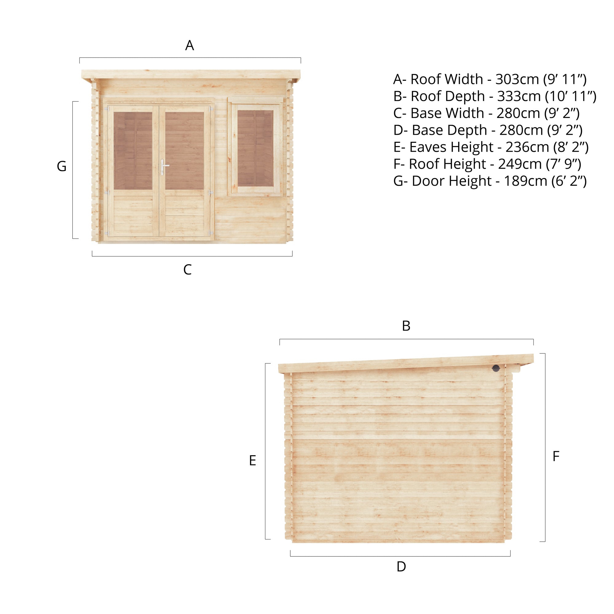 3m x 3m Elite Pent Log Cabin - 28mm