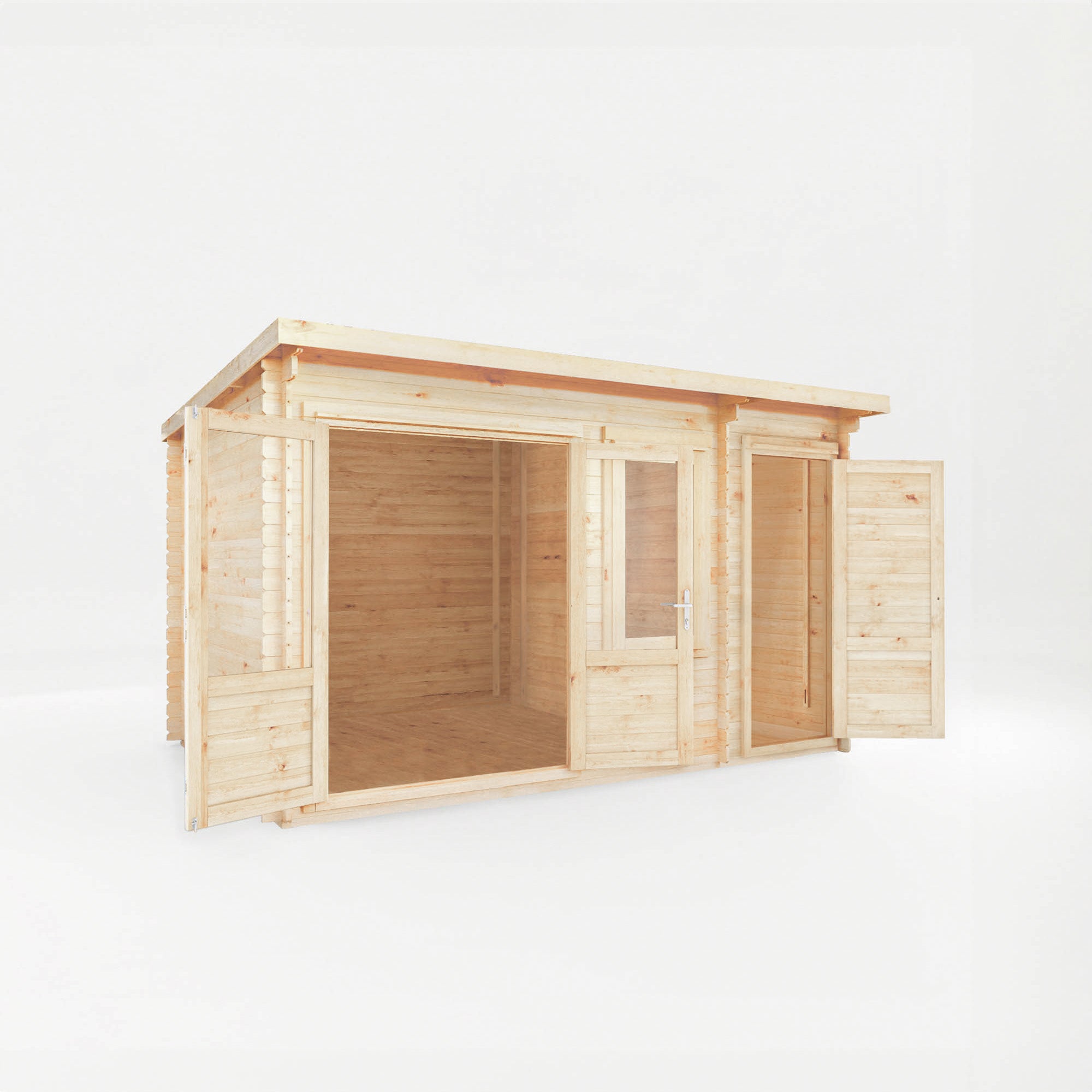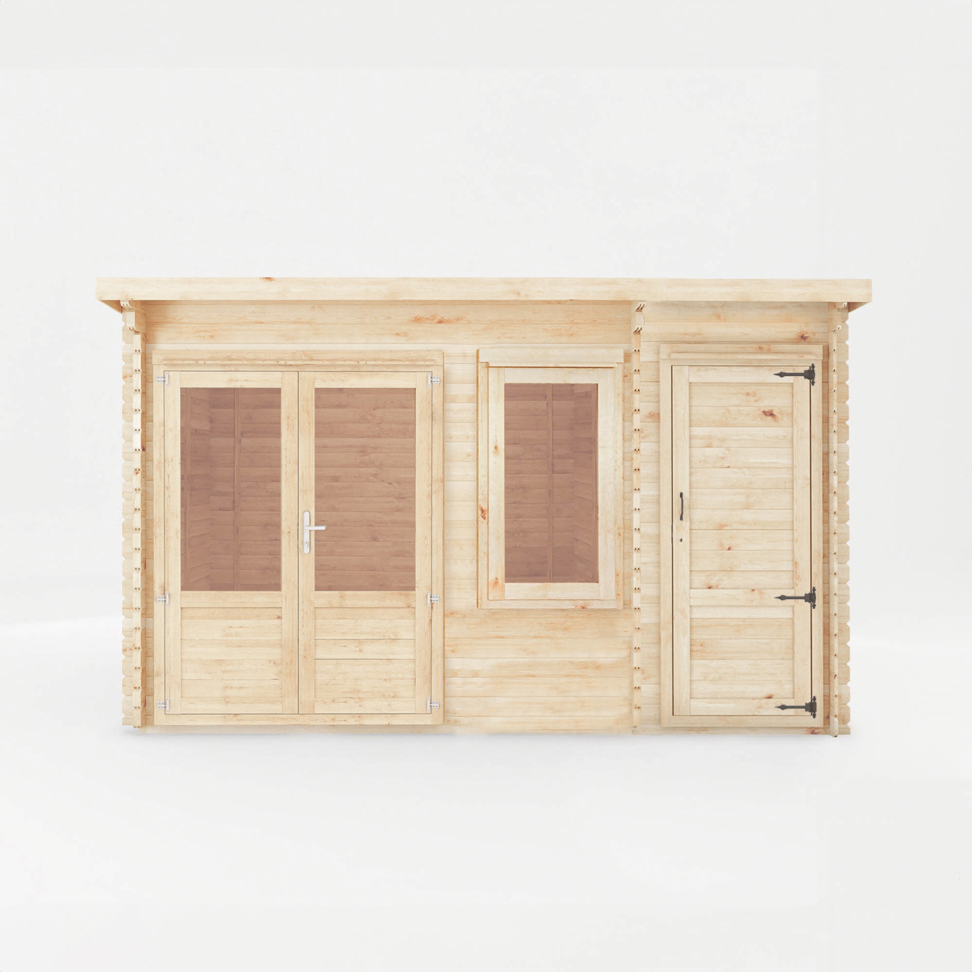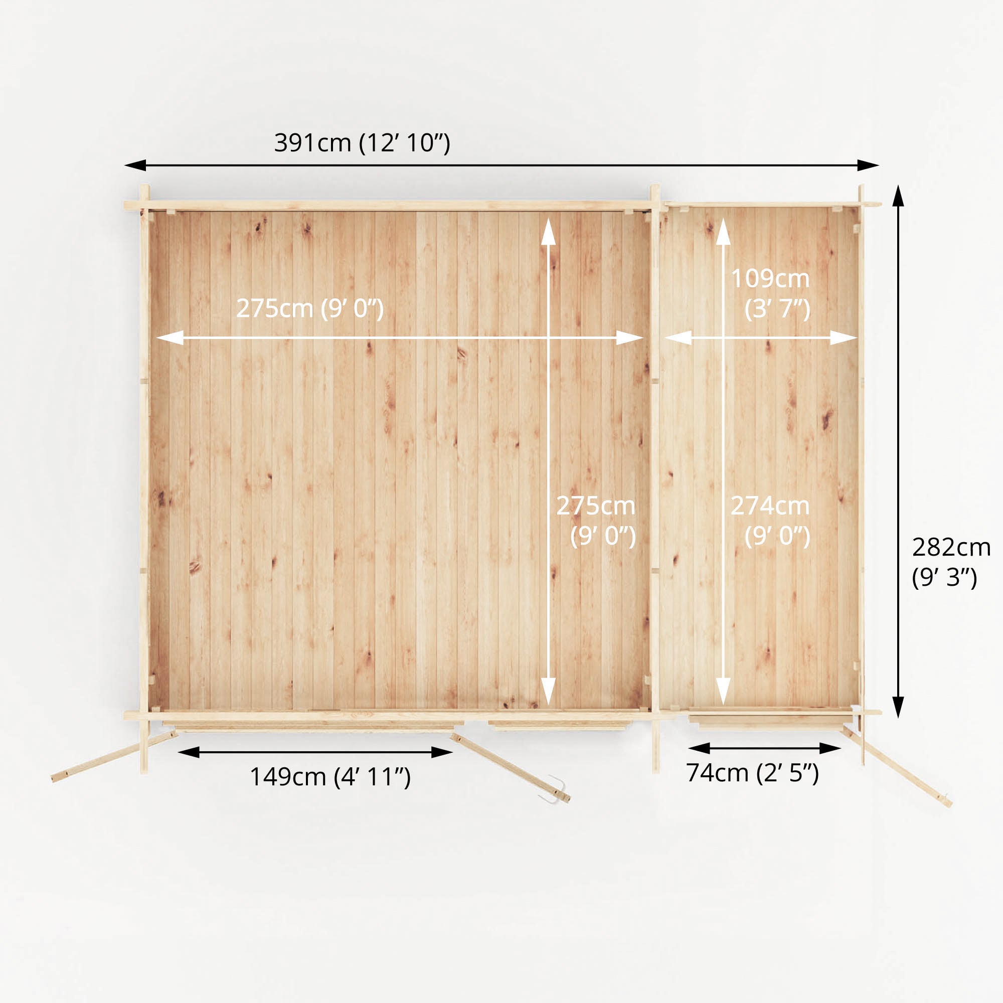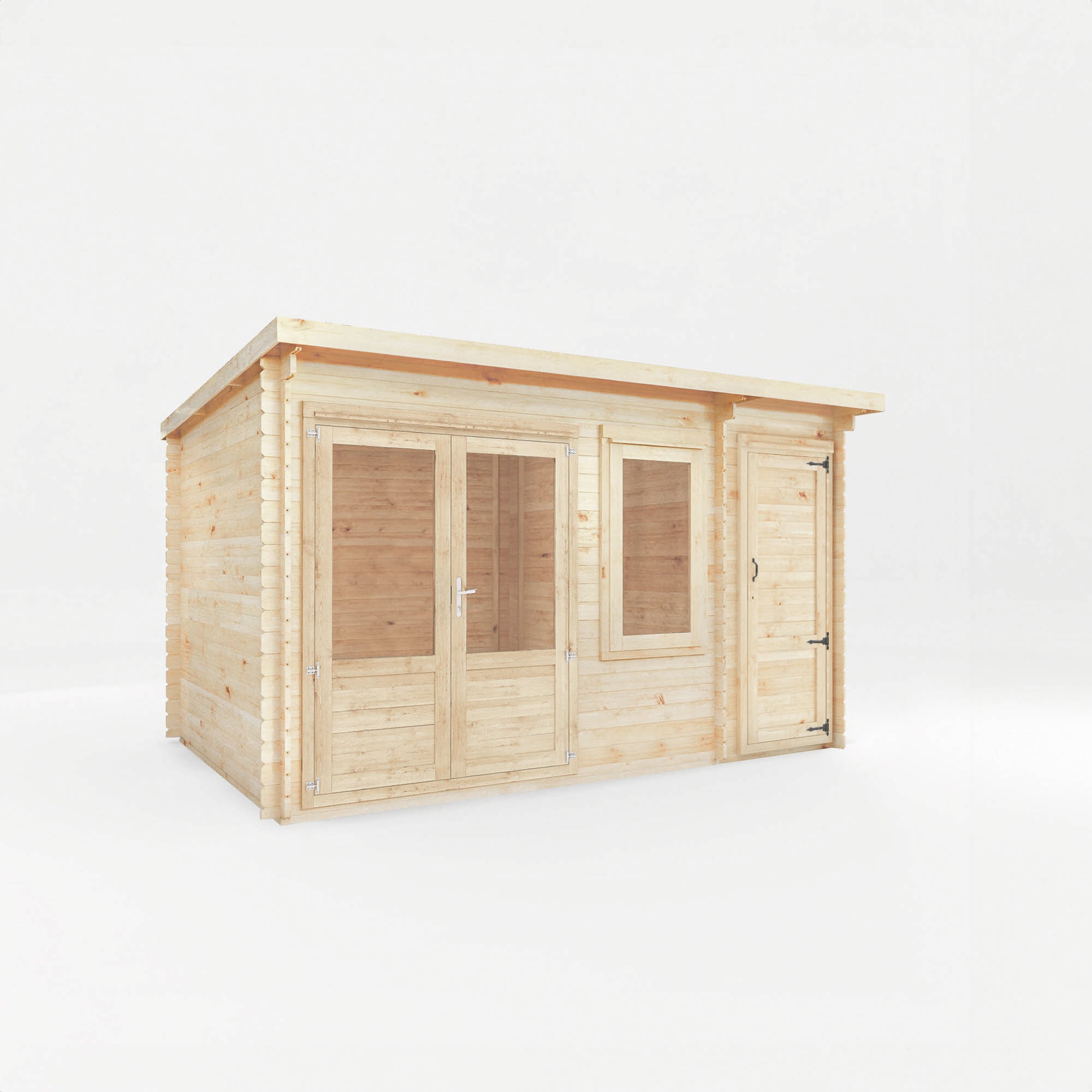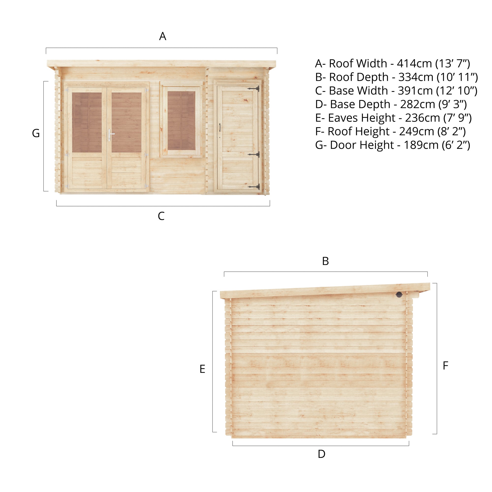 4.1m x 3m Elite Pent Log Cabin With Side Shed - 28mm