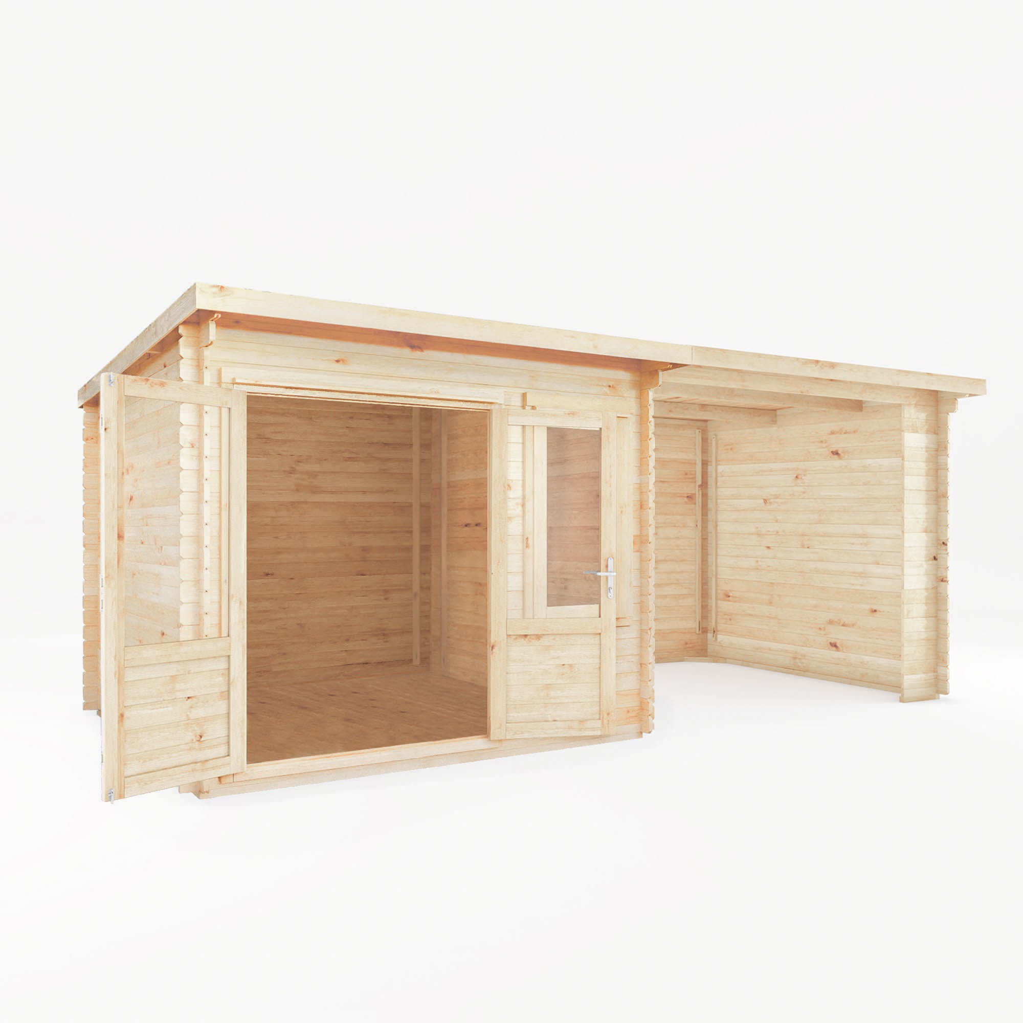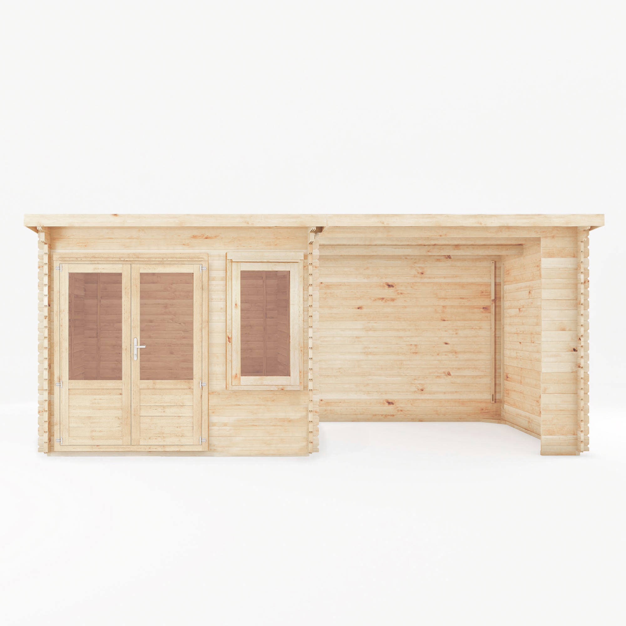 6m x 3m Elite Pent Log Cabin With Patio Area - 28mm