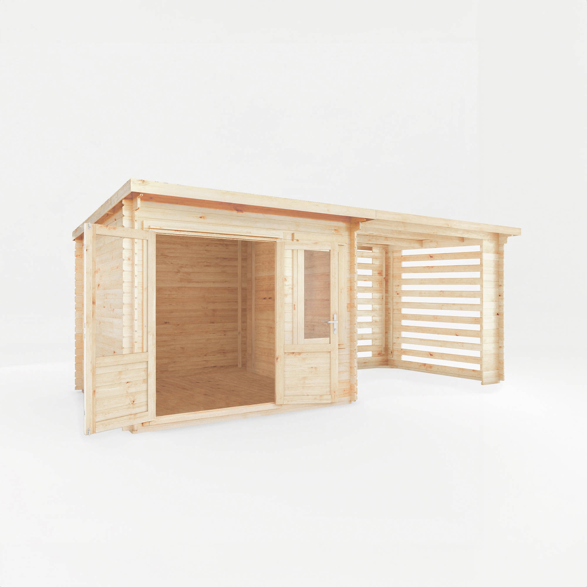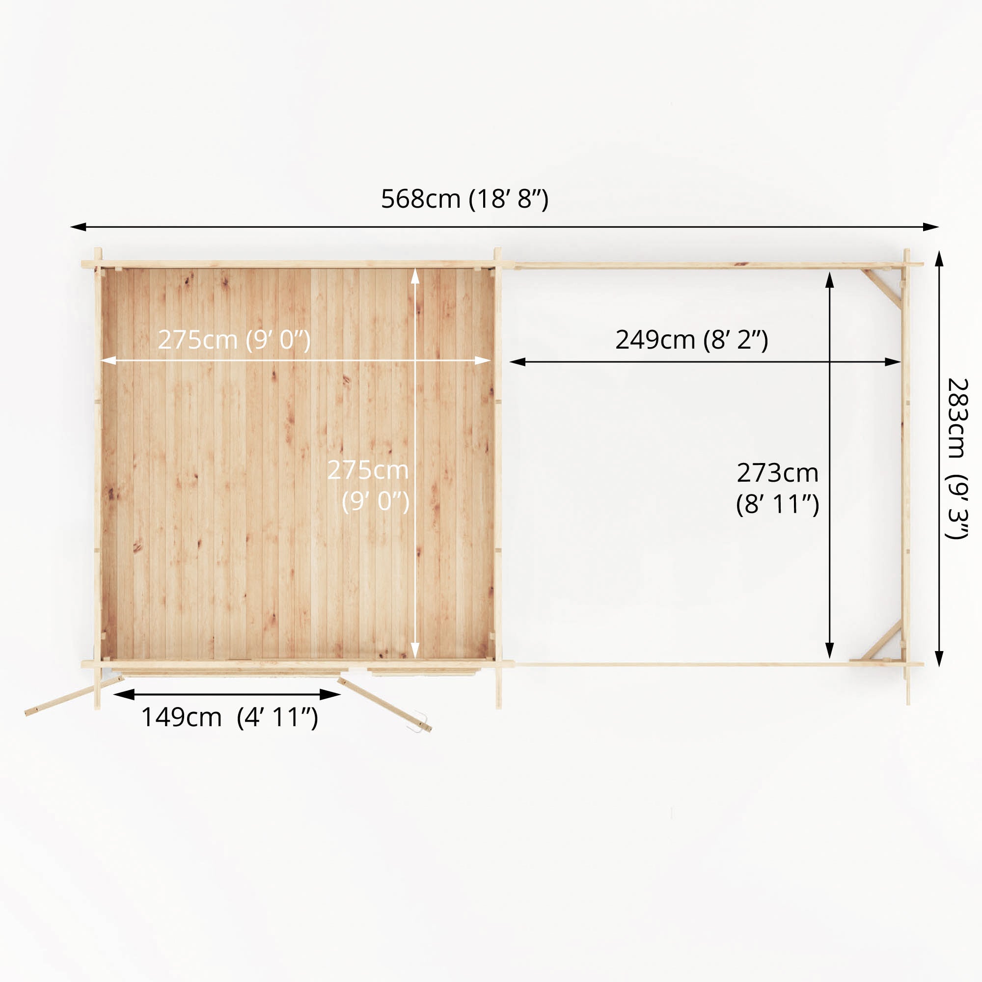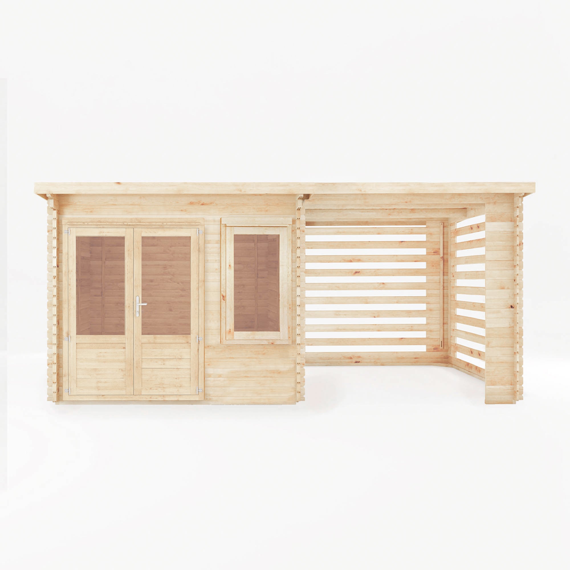 With the added advantage of a slatted area, this versatile extension can be positioned on either side of your cabin, offering additional space for unwinding or entertaining. Whether you're enjoying outdoor dining or immersing yourself in a book amidst the tranquil chirping of birds, this feature elevates your log cabin experience. The log board thickness for the slatted area is 28mm.