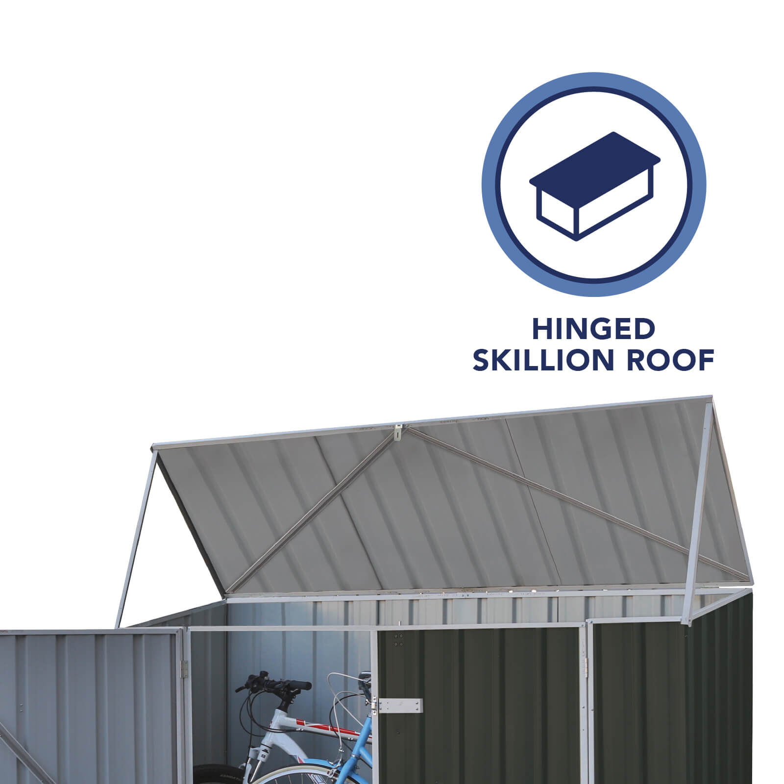 This Absco 7 x 3 Bike Store is the ideal storage solution for your bicycles or smaller outdoor equipment. The doubled hinged doors and skillion roof offer easy access to your belongings. It's compact size makes this the perfect storage option for those areas where space is at a premium. Manufactured in Australia from preassembled metal panels that fit together using a new revolutionary constructions system, Snap-Tite, for a quick and straight-forward construction. This metal shed is made from ultra-tough Bluescope Steel, a strong and hardwearing metal. The steel is then coated with a monument colourbond finish paint which helps enhance the durability of this shed and also makes this shed very low maintenance; the steel used in this shed is also very strong and is treated so it is resistant to rust and water damage. The Absco bike store also comes with a 20 year warranty as standard, testament to Absco's confidence in the product's longevity.