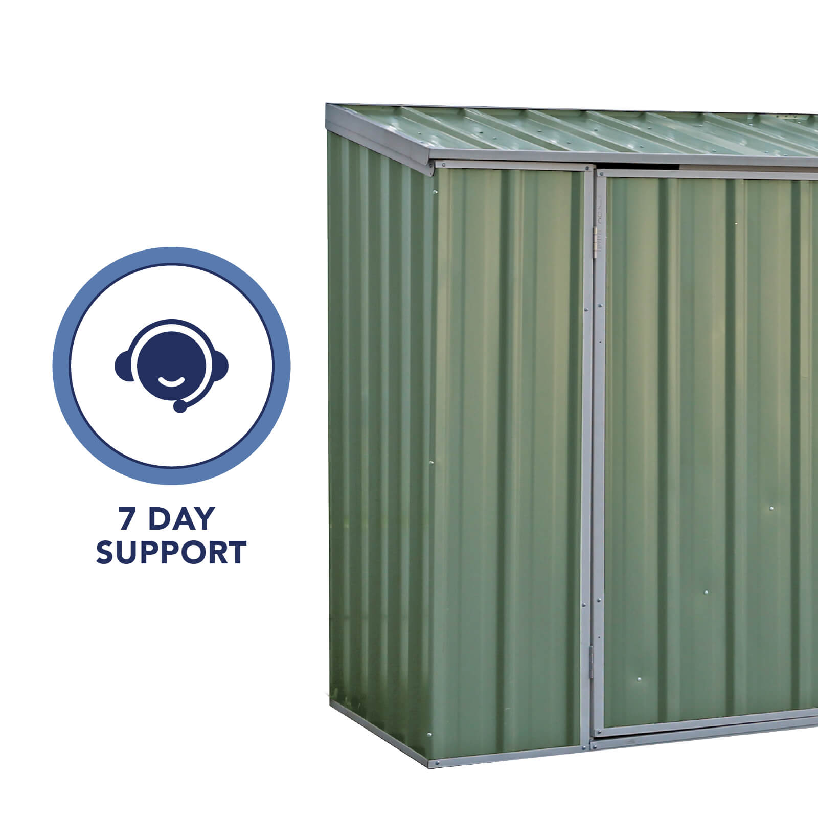 This Absco 7 x 3 Bike Store is the ideal storage solution for your bicycles or smaller outdoor equipment. The doubled hinged doors and skillion roof offer easy access to your belongings. It's compact size makes this the perfect storage option for those areas where space is at a premium. Manufactured in Australia from preassembled metal panels that fit together using a new revolutionary constructions system, Snap-Tite, for a quick and straight-forward construction. This metal shed is made from ultra-tough Bluescope Steel, a strong and hardwearing metal. The steel is then coated with a pale eucalyptus colourbond finish paint which helps enhance the durability of this shed and also makes this shed very low maintenance; the steel used in this shed is also very strong and is treated so it is resistant to rust and water damage. The Absco bike store also comes with a 20 year warranty as standard, testament to Absco's confidence in the product's longevity.