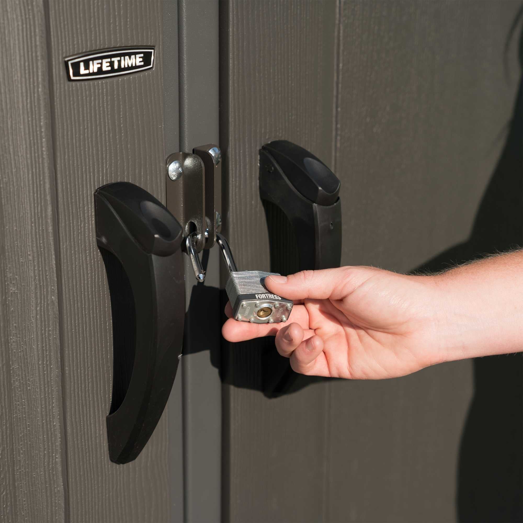 Need to expand your storage, but have limited space available? Store your things outside in a Lifetime Outdoor Storage Shed. The Steel-reinforced dual-wall panels and lockable doors makes the shed strong, durable, and secure. In addition, it features an adjustable shelving and storage system, allowing you to store your tools and belongings however you need them.