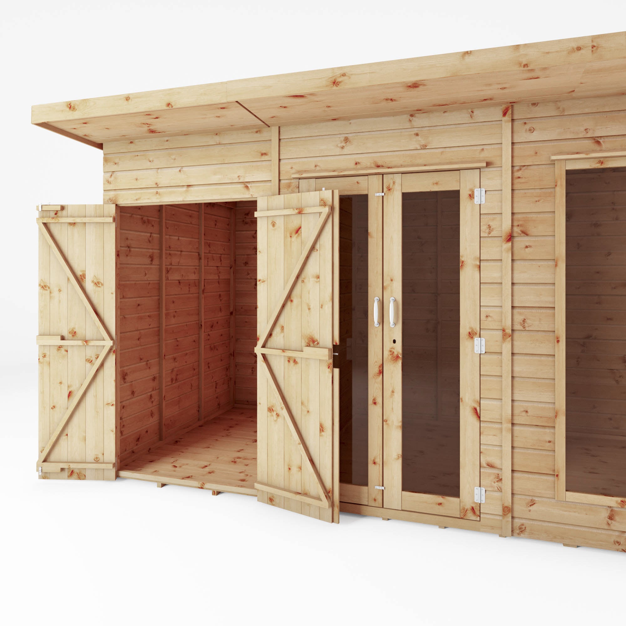 The 14 x 6 Maine Pent Summerhouse with Side Shed is the perfect choice if you are seeking a super functional space. The handy side shed takes care of all your storage needs, with ample room for all your garden essentials and outdoor accessories, meaning you can simply relax in your summerhouse and enjoy your tidy garden!