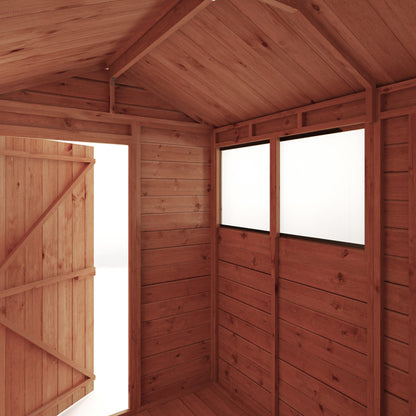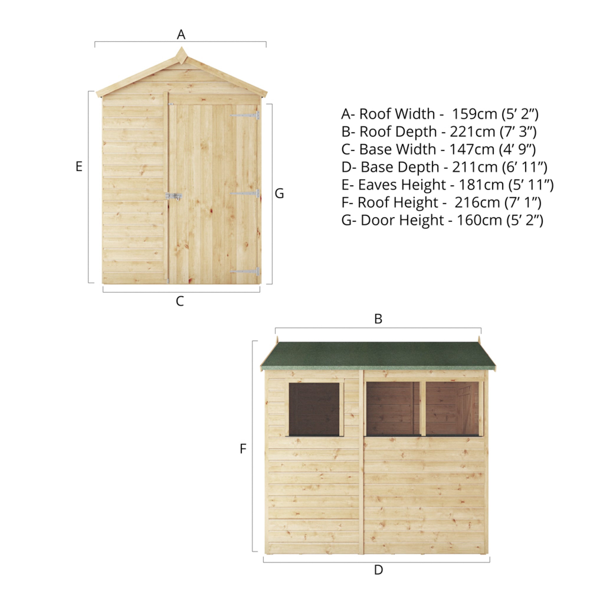 Crafted from high-grade, sustainably sourced timber, this shed is as eco-friendly as it is robust. The shatterproof, UV-resistant styrene windows allow natural light to enter while offering safety and longevity. Plus, the waterproof mineral felt roofing ensures complete protection from the elements, keeping your shed dry all year round.