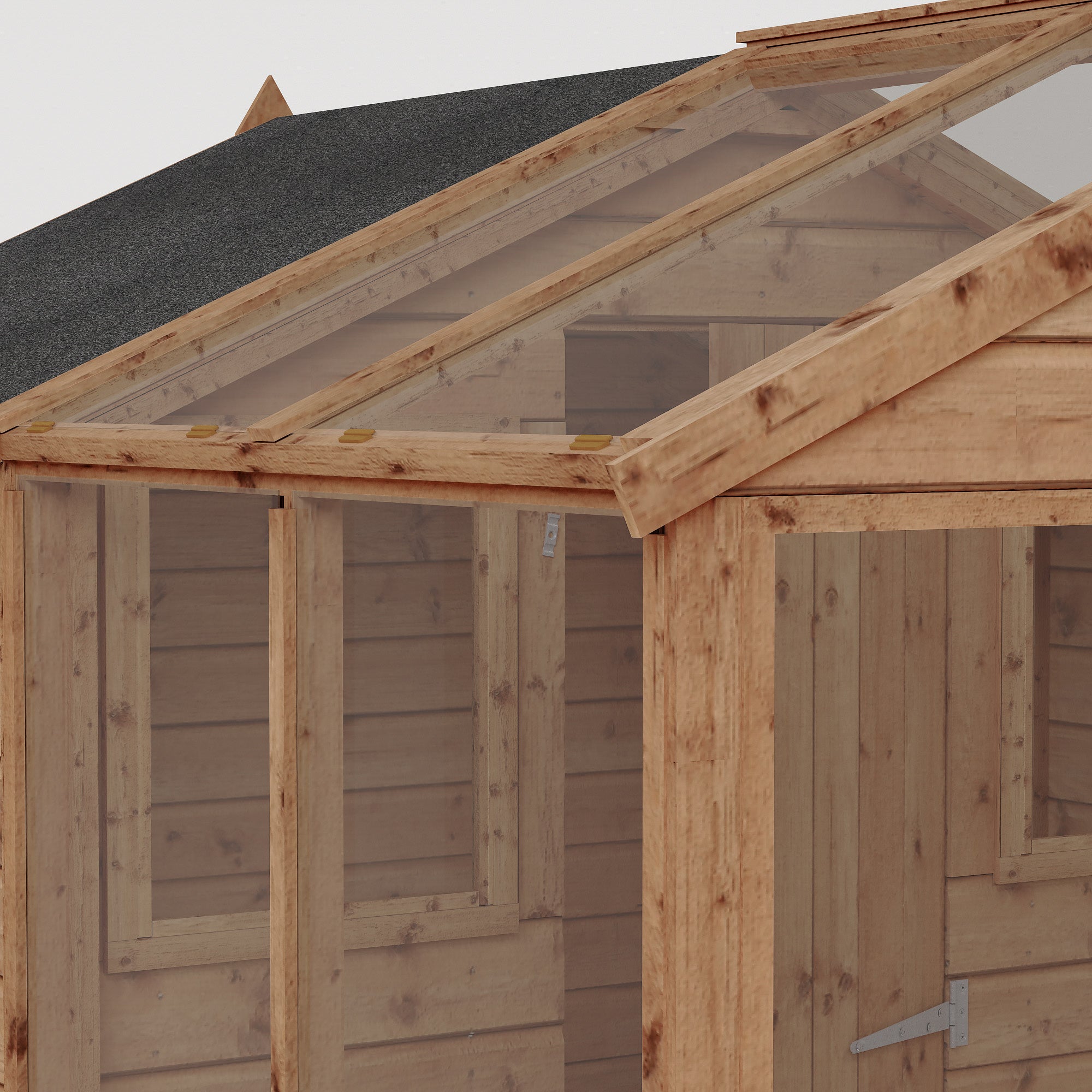 The walls of this greenhouse and shed are constructed using premium horizontal interlocking tongue and groove boards with a shiplap profile. The shiplap profile includes a protective and aesthetically pleasing lip to create a strong, weatherproof panel. Complete with thick wooden framing to support the cladding internally, this building offers a rigid and long-lasting structure.