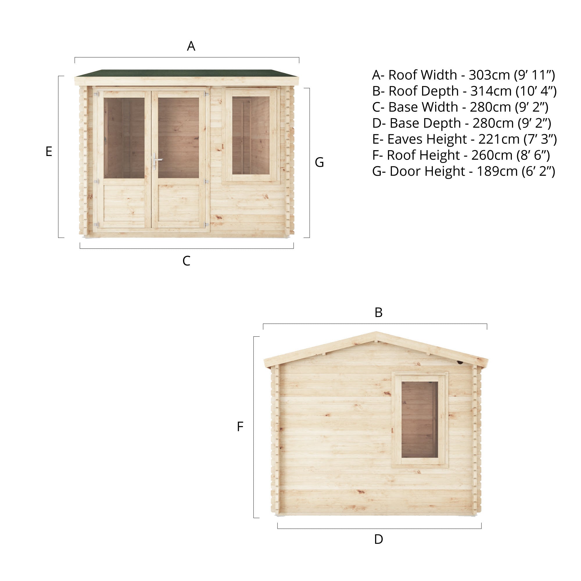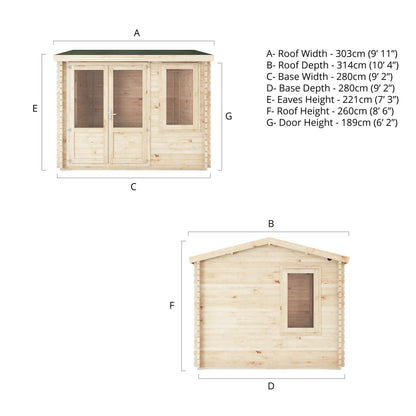 The Robin Log Cabin offers a tranquil space ideal for moments of relaxation or for creating a productive home office atmosphere. Its classic design, including an Alpine-inspired apex roof and delightful opening windows, effortlessly blends with any outdoor setting. The traditional apex roof design not only adds to the cabin's aesthetic appeal but also creates an airy interior, accommodating taller furnishings and decor.
