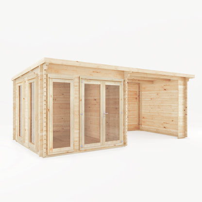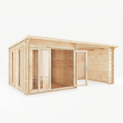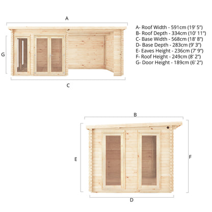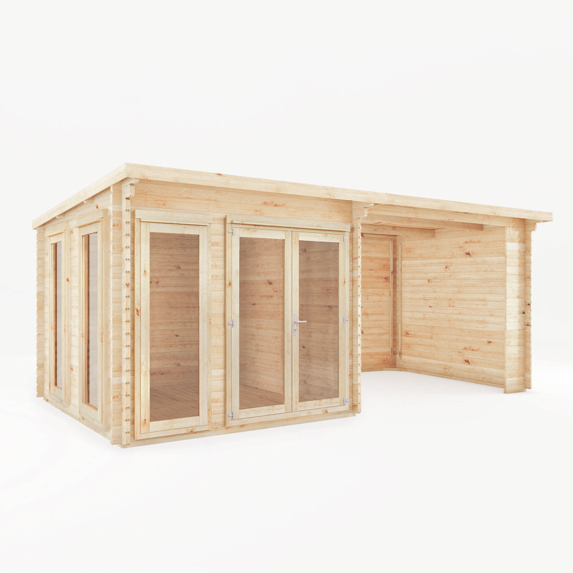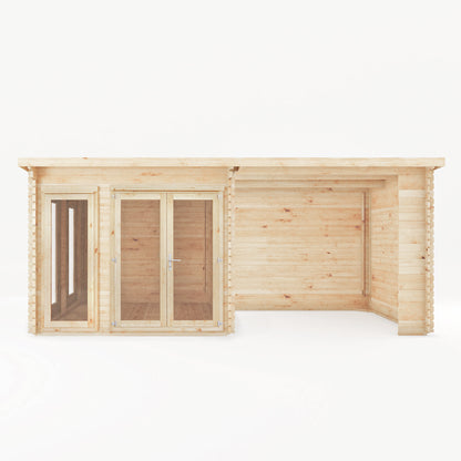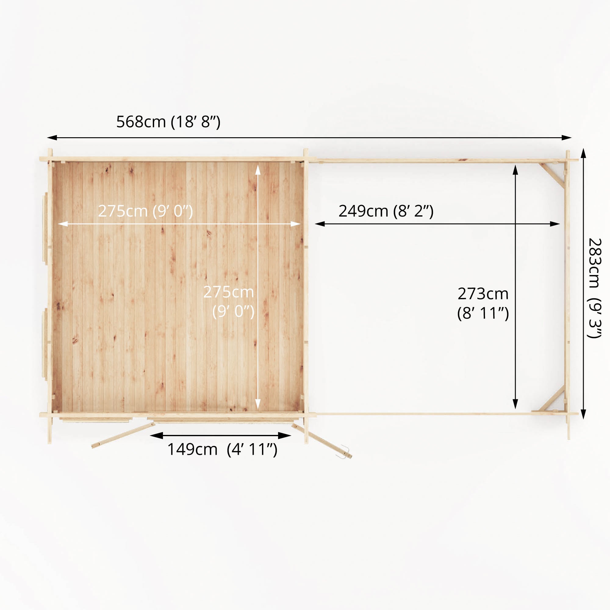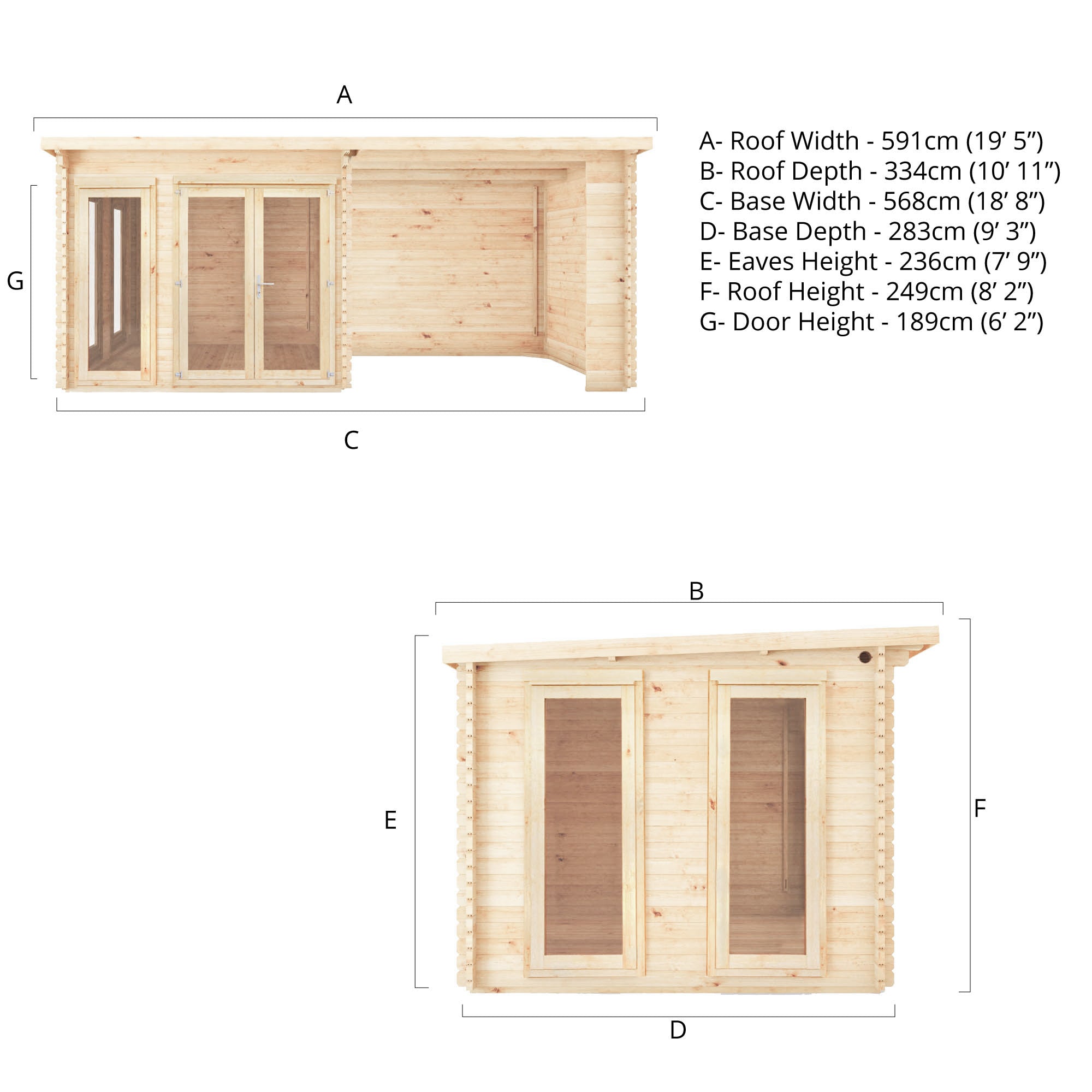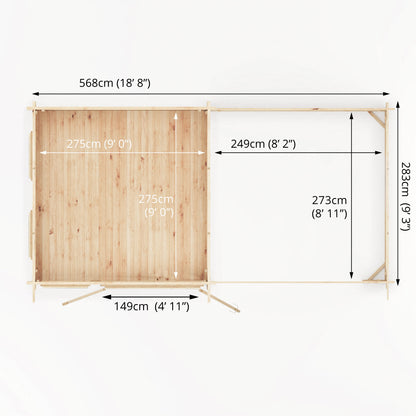 By incorporating a patio area, you can enjoy the outdoors while staying sheltered. Perfect for relaxation, it can transform into a cosy outdoor space, a hot tub hideaway, or a shaded area for children to play away from the sun. Please note, you can place the patio on either side of the building to fit your preferences. The log board thickness for the patio area is 28mm.
