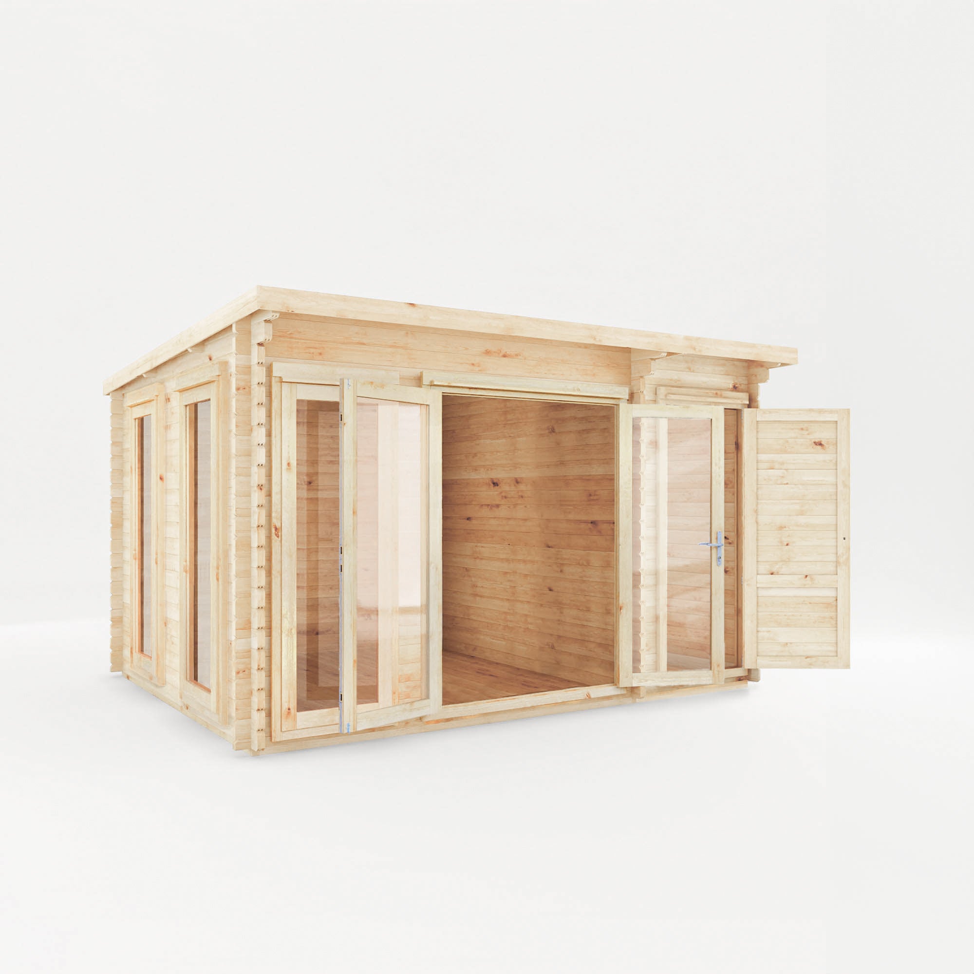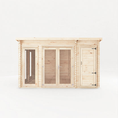 With its pent roof design, the Wren Log Cabin with Side Shed offers a sleek and contemporary design. Its sloped roof helps the building tuck away unnoticed in any garden space, whilst providing a cosy and snug inside feel.