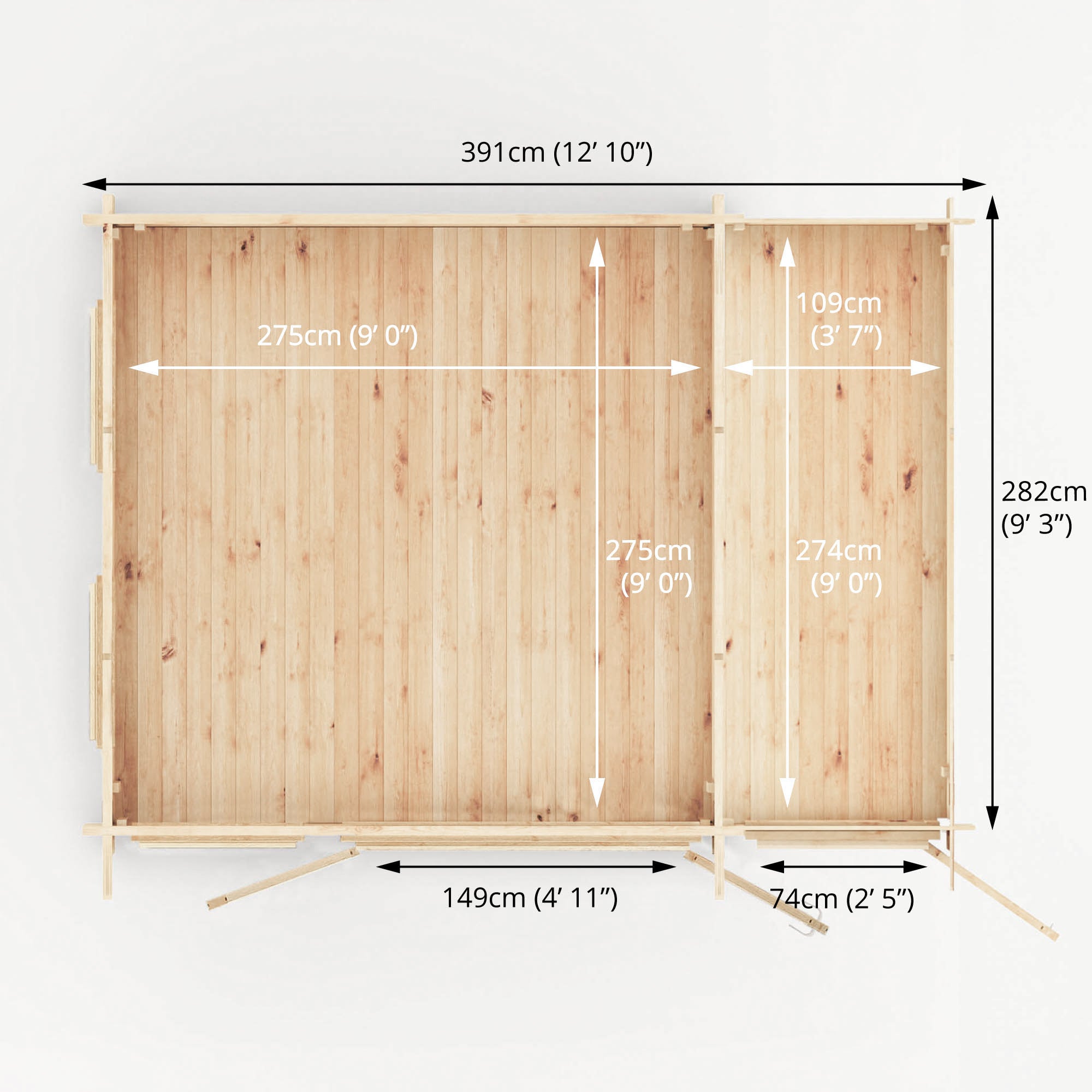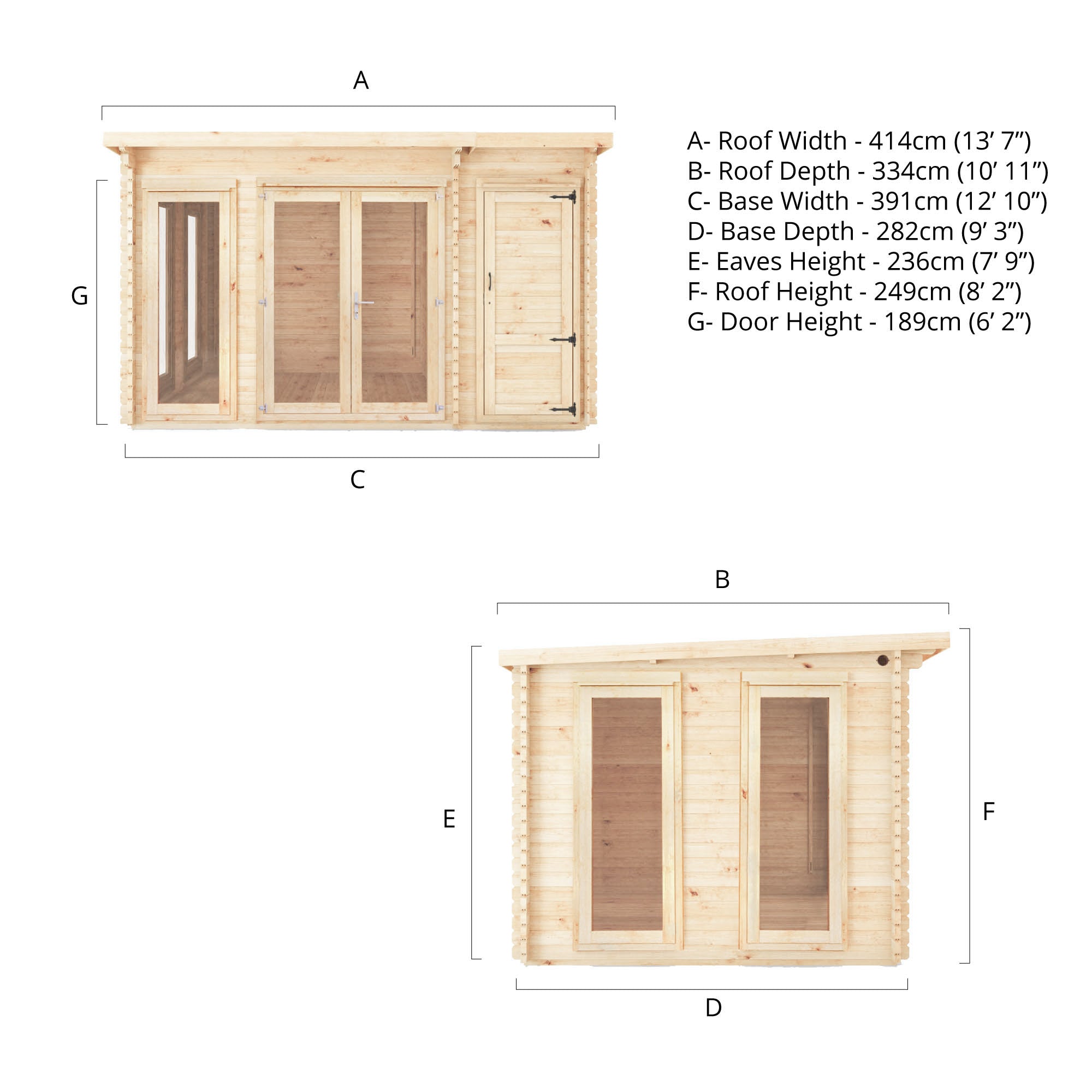 The Wren Log Cabin offers a choice of three log thickness options: 28mm, 34mm, or 44mm interlocking boards, all designed to suit your unique preferences. Opting for thicker log boards brings about several advantages. The heightened wall thickness improves insulation, ensuring the cabin remains adaptable and comfortable throughout the entire year, creating a cost effective space which can be used throughout the seasons. Moreover, selecting thicker walls enhances the interior's tranquillity, creating a serene space perfect for both work and play.