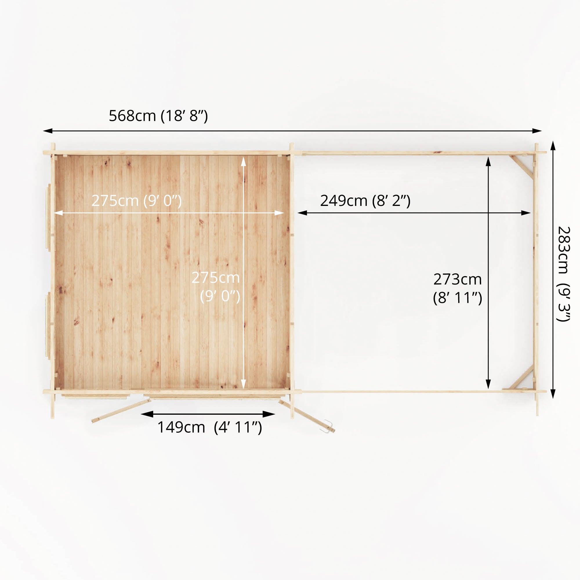 The addition of a slatted area, which can be added either side of your log cabin, provides an additional space for relaxing or entertaining. Perfect for al fresco dining, or reading a book beneath the sound of tweeting birds, it makes the ideal enhancement for your new log cabin. The log board thickness for the slatted area is 28mm.