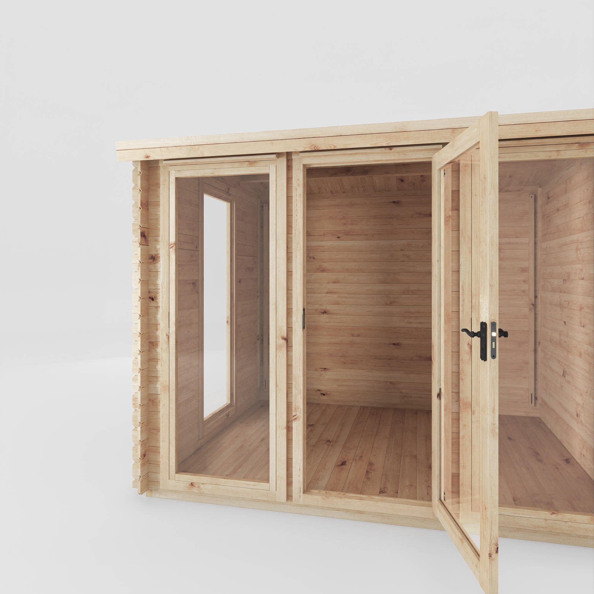 The Value Apex Log Cabin creates the perfect way to make the most of your garden, while in the comfort of the indoors. This elegant and stylish garden building is ideal for those who want to enjoy their garden and the summer weather while being shaded from the sun. Featuring floor to ceiling, glazed windows to the front and the side, this building floods with an abundance of light and air, and becomes a vibrant and inviting space for you to enjoy.